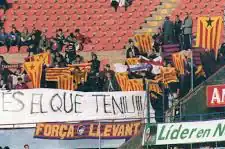 « L'anticatalanisme investit les terrains de sport, celui du Mestalla notamment, qui fut le théâtre de multiples débordements orchestrés sur le thème de la langue par les Yomus, l’association des supporters ultras du Valencià Fùtbol Club : « ¡Puta Barça, puta Cataluña! ». »
