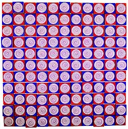 Ces œuvres imposent la dé-programmation du mental au profit de la sensation pure qui est le "démarreur" de toute rêverie. Les œuvres de Youri Messen-Jaschin, artiste prolifique et protéiforme, révèlent au regard un univers prismatique dont le pouvoir désorientant abolit d'un coup les points de repères de notre vison habituelle par la mise en vibration des lignes de fuite elles-mêmes, organisatrices de la conscience de la perspective et du relief. Ce gommage soudain donc des ancrages géodésiques permet de nous immerger dans la sensation pure, chatoyante et troublante, de la couleur en mouvement!