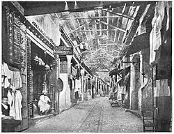 Vue de l'entrée et du minaret de la mosquée Youssef Dey en 1899.