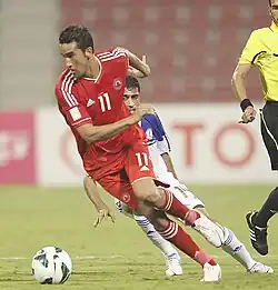 Youssouf Hadji, en blanc avec le Maroc en 2011. | ||