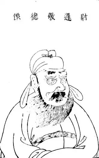 Il est avec Qin Shubao, un autre général de cette dynastie, un des deux principaux Dieux des Portes des religions chinoises.