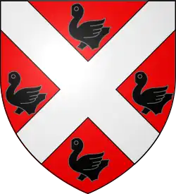 - De gueules au sautoir d'argent cantonné de quatre merlettes de sable