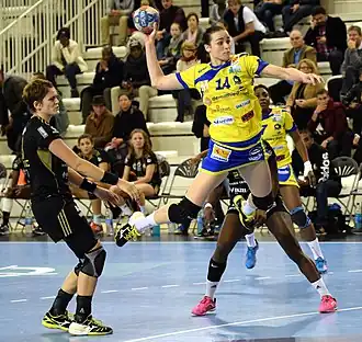 Le 28 mai 2014 lors de la finale aller du championnat de France face à Issy Paris Hand | ||