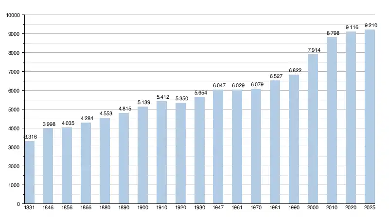 - Source: DGS, de 1831 à 1981 = recensements population; à partir de 1990 = nombre d'habitants chaque 1 janvier[2]