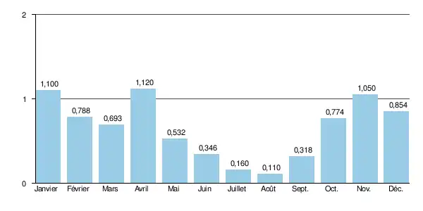 Cependant, le VCN3 peut chuter jusque 0,001 m3/s, en cas de période quinquennale sèche, soit 1 petit litre par seconde, ce qui est très sévère, le cours d'eau, alors réduit à un mince filet, étant quasi à sec.