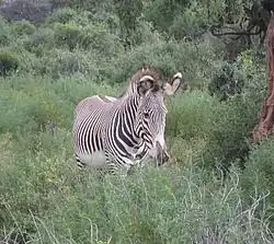 Le zèbre de Grévy vit au Kenya et en Éthiopie. Comparé aux autres zèbres, il est très grand, a de grandes oreilles, et ses rayures sont plus fines. Il vit dans les plaines semi-arides où il se nourrit d’herbe, de légumineuses et de buissons ; il peut survivre jusqu’à cinq jours sans boire.