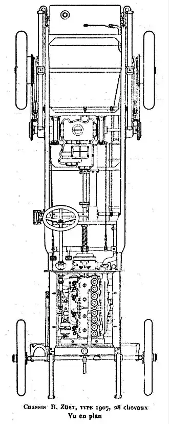 Après son décès, ses enfants décidèrent de poursuivre son activité et montèrent en plus en 1905 une seconde usine à Milan destinée à la fabrication de voitures et véhicules commerciaux. Les deux premiers modèles de la marque Züst étaient équipés de moteurs 4 cylindres de cylindrée respectable de 7 432 cm3 et de 11 308 cm3.