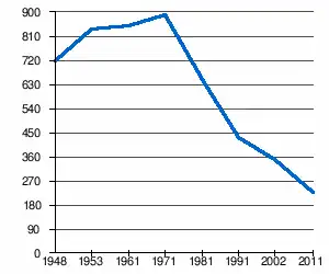 | 717 | 837 | 852 | 891 | 647 | 430 | 350[2] | 229[1] |