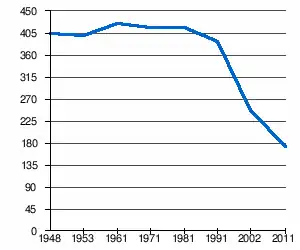 | 404 | 399 | 426 | 417 | 417 | 387 | 247[2] | 172[1] |