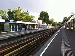La station, située sur un remblai, dispose d'un accès au niveau du sol. Elle est équipée, notamment, d'automates pour l'achat ou la recharge de titres de transport et d'un ascenseur pour l'accessibilité des personnes à la mobilité réduite[2].