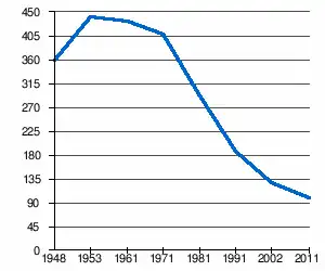 | 359 | 440 | 434 | 409 | 292 | 187 | 128[2] | 99[1] |