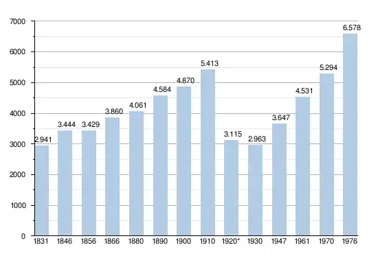 - Source: DGS , de 1831 à 1981=recensements population; à partir de 1990 = nombre d'habitants chaque 1 janvier[5]