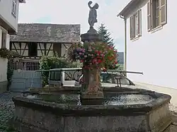 Cette fontaine en grès est la plus ancienne du village. Une statuette posée sur la fontaine représente le dieu Bacchus tenant la grappe de raisin[34]. La fontaine a été restaurée en 1876.