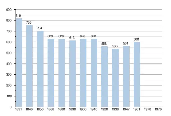 - Sources : INS, Rem. : 1831 jusqu'en 1961 = recensements[2].