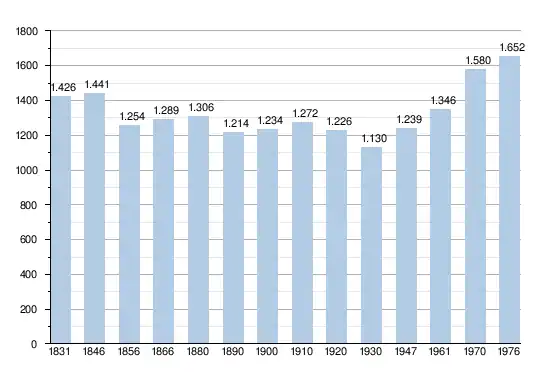- Sources : INS, Rem. : 1831 jusqu'en 1970 = recensements, 1976 = nombre d'habitants au 31 décembre[2].