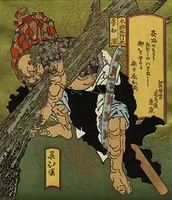 Pendant ce temps, Zhou Tong a également un disciple supplémentaire nommé Wu Song. Wu Song devient célèbre pour avoir tué un tigre mangeur d'hommes à mains nues et est nommé constable dans son Shandong natal. Le magistrat du comté Sun Guoqin envoie plus tard Wu en mission à Kaifeng avec un baume en os de tigre précieux afin de susciter la faveur de personnages influents[40]. Lors de son séjour dans la capitale, il fait la connaissance de Zhou. Zhou trouve que Wu est un homme d'une grande force, mais estime qu'il manque de raffinement dans sa technique martiale et, par conséquent, offre des conseils pour la formation de Wu. Malheureusement, ces deux hommes n'ont interagi que pendant deux brefs mois avant que Wu ne rentre chez lui, pour ne plus jamais revoir Zhou.