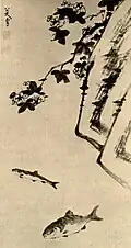 Poissons et rochers. Feuille d'album, encre sur papier, 135.3 × 61 cm. Metropolitan Museum of Art, New York.