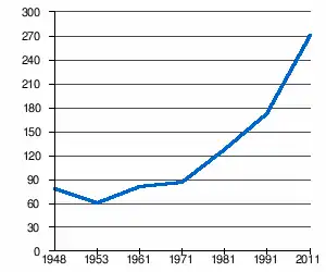 - 1 2 (sq) « Évolution de la population 1948-2011 », sur pop-stat.mashke.org (consulté le ).