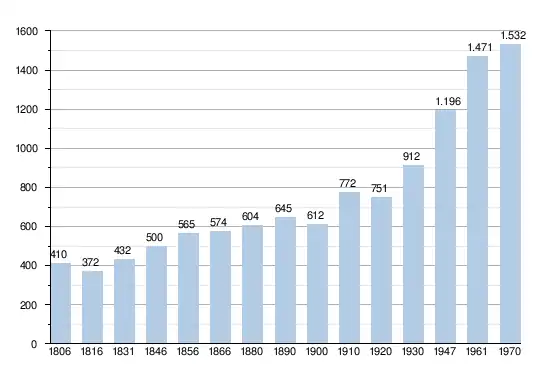 - Sources : INS, Rem. : 1831 jusqu'en 1970 = recensements, 1976 = nombre d'habitants au 31 décembre[2].