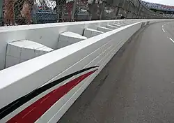 - Et finalement une barrière de type Tecpro ou une barrière de pneus, avant un dernier rail de sécurité surplombé d'un grillage pour la protection des spectateurs (projection de débris).
