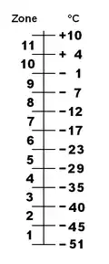 - La Sibérie nécessite l'adjonction de la zone 0 pour des températures minimales moyennes inférieures à −51 °C