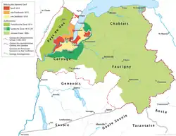 La zone franche est agrandie par Napoléon III en 1860 lors de l'annexion de la Savoie par la France. Cette grande zone franche recouvre la totalité du Genevois, du Chablais et du Faucigny[3]. En 1923, le gouvernement Poincaré décide unilatéralement de supprimer la zone franche de Haute-Savoie ainsi que celle du Pays de Gex. Il s'ensuit un différend entre la France et la Suisse porté devant la Cour permanente d'arbitrage de La Haye. Après deux arbitrages, la zone franche de Haute-Savoie est rétablie à sa limite originelle. La sentence de Territet, formulée en 1933, fixe les règles actuelles de la zone franche. Ainsi, les marchandises étrangères entrent dans la zone en franchise de droits de douanes, mais sont passibles de taxes fiscales; et les produits agricoles produits dans la zone entrent en franchise en Suisse[3].