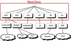 La zone racine du DNS est desservie par treize grappes de serveurs racines du DNS qui font autorité pour les requêtes aux domaines de premier niveau de l'Internet[5],[6]. Ainsi, chaque résolution de nom commence par une requête à un serveur racine ou utilise des informations qui ont été obtenues d'un serveur racine.
