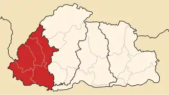 | Centre | ![]() | Dagana Gasa Punakha Tsirang Wangdue Phodrang | Damphu | 18 313 km2 | 230 000 |