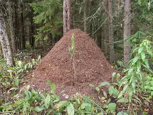 La fourmi des bois (Formica paralugubris) apporte souvent de grandes quantités de résine solidifiée de conifères dans le nid de la colonie. Des études en laboratoire ont montré que cette résine inhibe à la fois la croissance de bactéries et de champignons (dans un contexte imitant les conditions naturelles de vie des fourmis)[39],[40]. Des travaux de laboratoire ont conclu que ce comportement est prophylactiques plutôt que thérapeutique[39],[41].