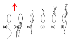 - zoospores biflagellées (fig. 1e, f) ; un flagelle lisse et un flagelle couvert de poils (de type guirlande), attachés soit à l'apex soit latéralement. Ils sont caractéristiques des Oomycota.