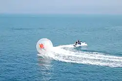 - Attachée à un jet-ski, la zorb est tractée comme en ski nautique.