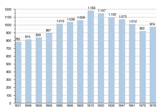 - Sources : INS, Rem. : 1831 jusqu'en 1970 = recensements, 1976 = nombre d'habitants au 31 décembre[3].