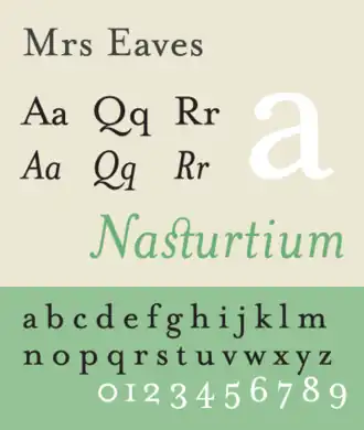 Au milieu des années 1990, son travail devient plus érudit et plus sage. Elle produit deux ré-interprétations célèbres de polices de caractères du XVIIIe siècle : Mrs Eaves (en) basé sur le Baskerville avec de nombreuses déclinaisons de ligatures, et Filosofia sur le Bodoni. Fairplex reprend les caractères peints sur les panneaux de l'American sign.